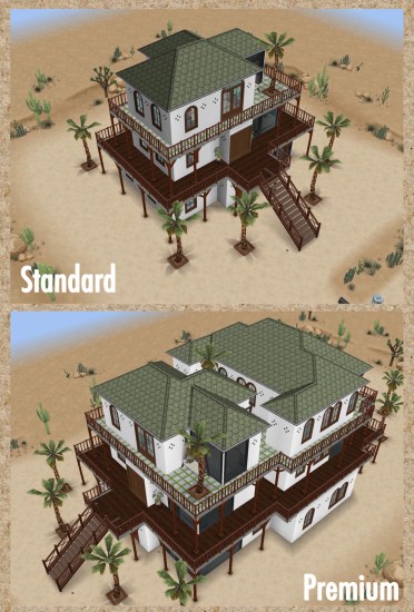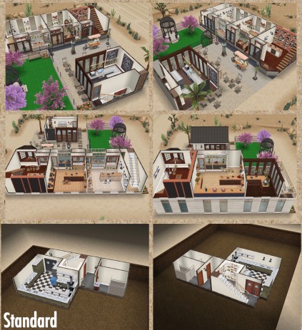 This template is available on a standard and a premium residence under the driveway homes tab (if you build it on the Barter Boardwalk lot in Sim Springs you will be building the standard (even though it is actually a premium sized lot to begin with!) the first one is free, after this it will cost simoleons depending on how many houses you have already built. If you build it in Sim Springs it will on the community lot so your sims cannot live there but if you build in Simtown your sims will be able to live at the boardwalk as it will be a normal house lot.