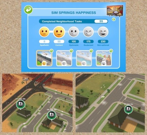 You will need to complete a certain amount of Neighbourhood tasks to level up the Sim Springs Happiness: