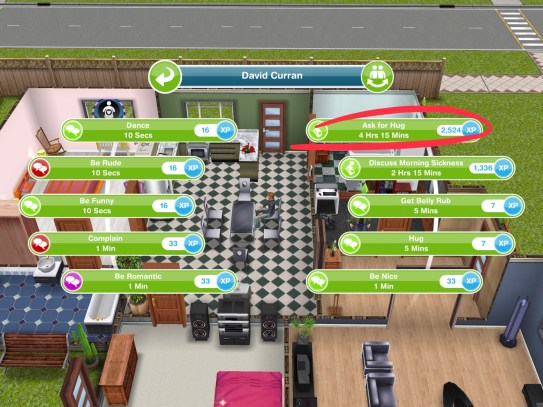 - Ask for a hug to help deal with mood swings (select ask for hug interaction on another sim)