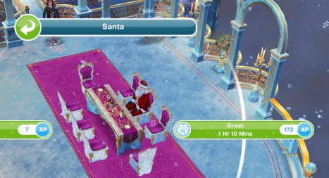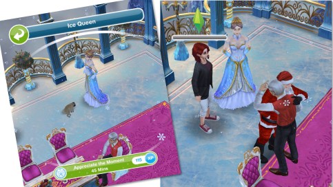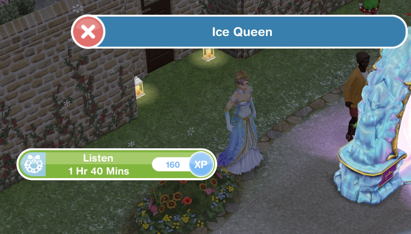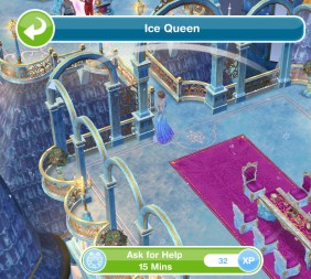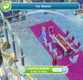 - Review snow schedule 14 times- 2 hours [inspired: 1 hr 54 mins] (click on the Ice Queen with 14 sims to get this option)(can skip all with 12 LP- need to earn LP quickly?)