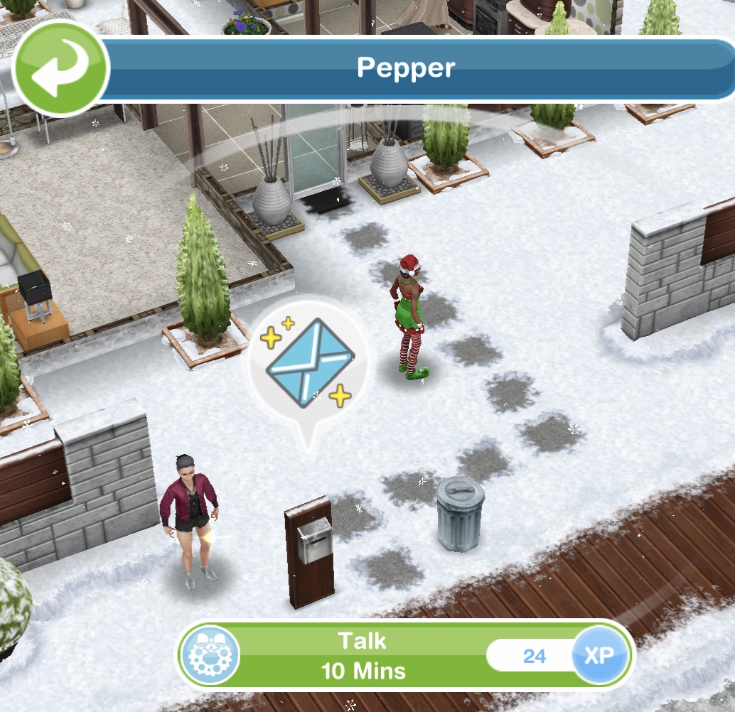 - Talk to Pepper in the park- 1 hour [inspired: 57 mins] Can’t find Pepper? Pepper should appear on the simtracker so you can whistle them to the park