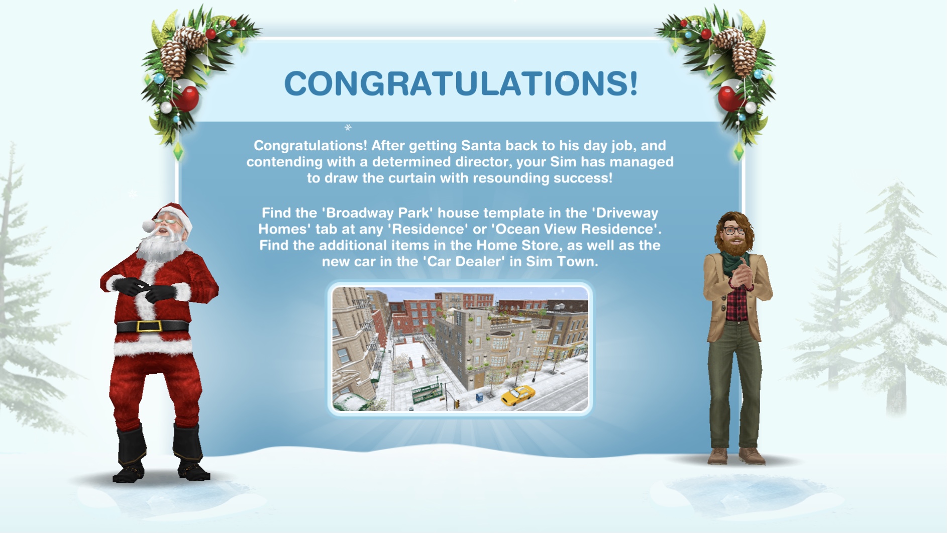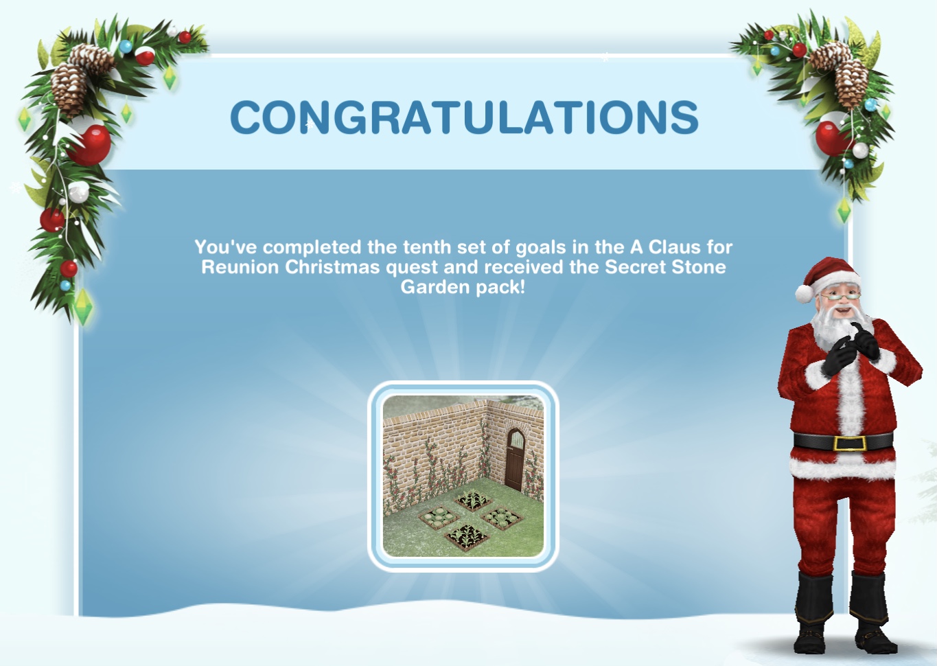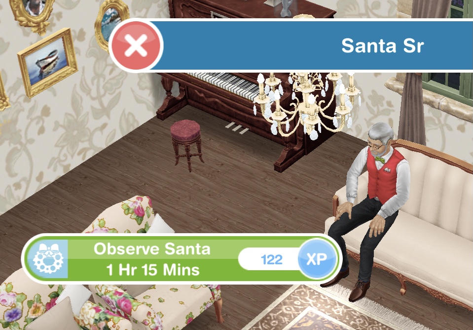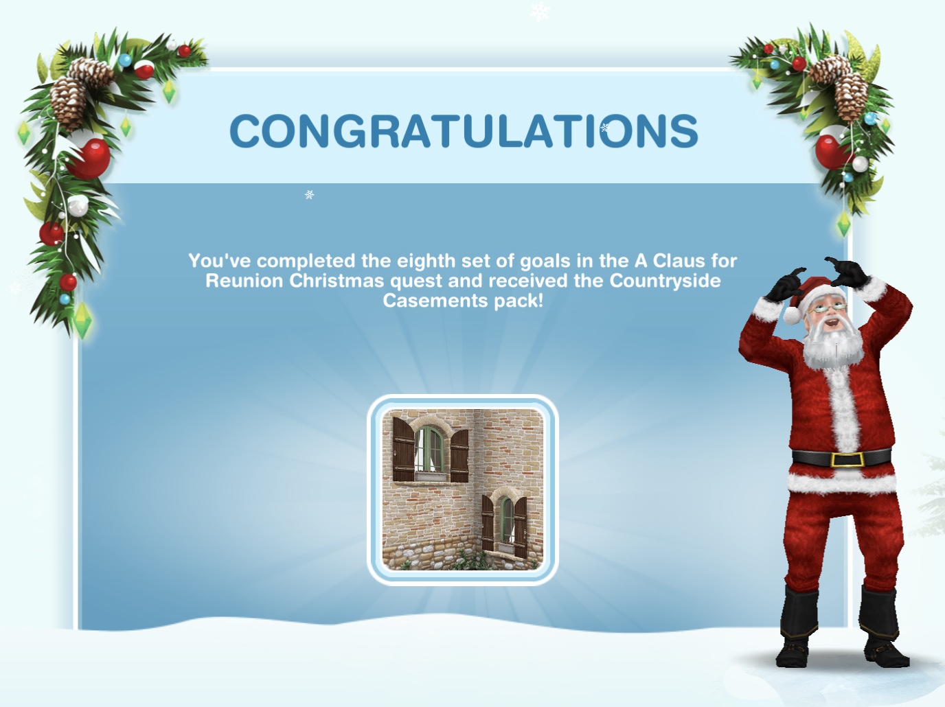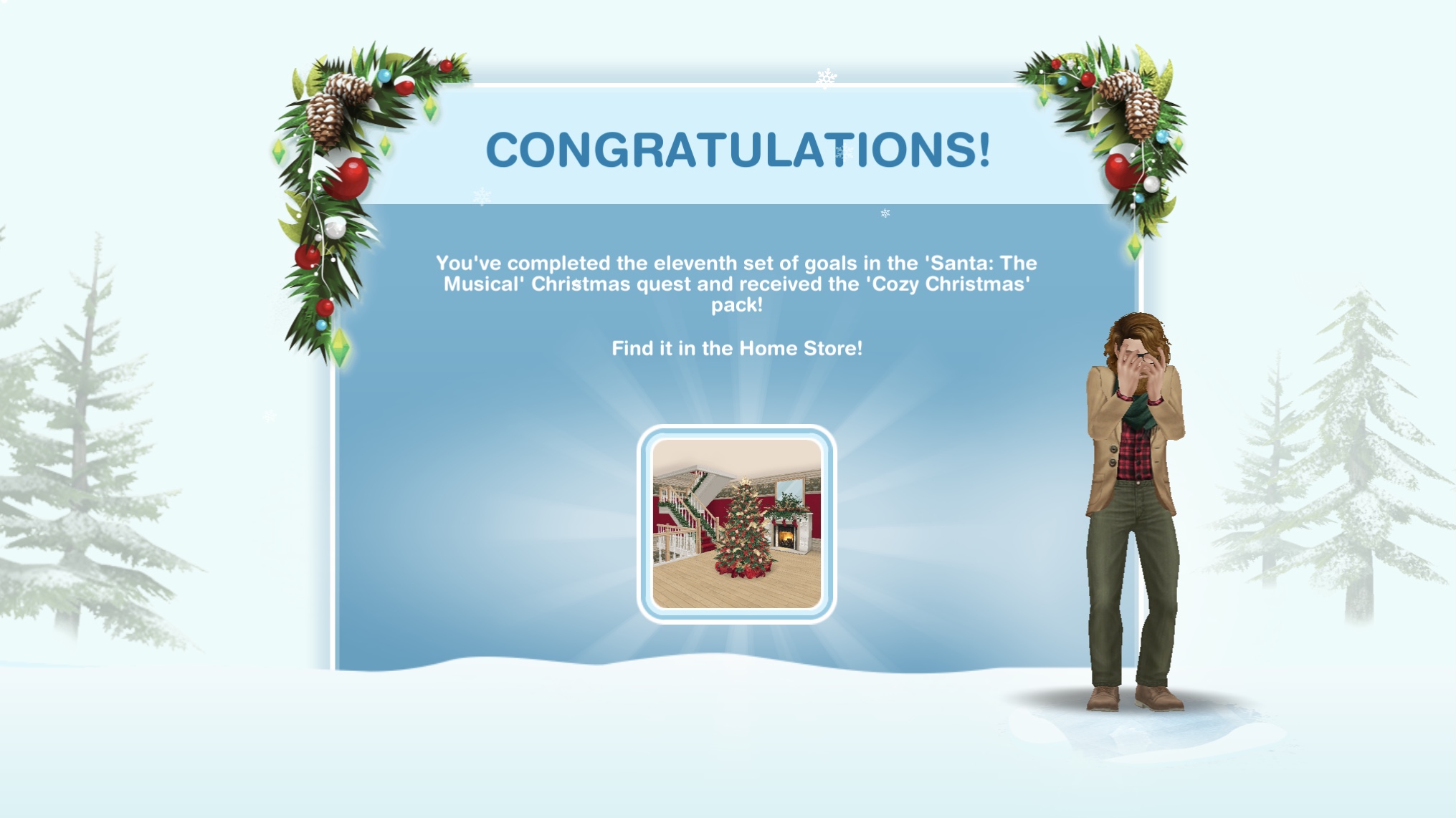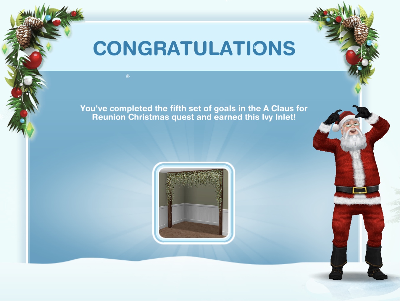 - Search for Santa’s contract 23 times- 1 hour 12 minutes [inspired: 1 hr 8 mins] (click on 23 items around Plümberg and your sims homes) (can skip all with 20 LP- need to earn LP quickly?)