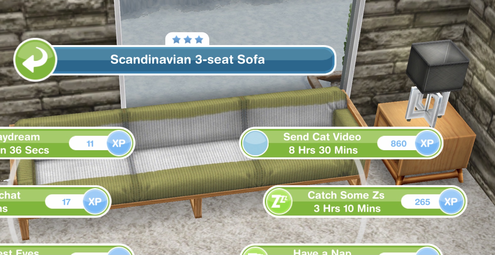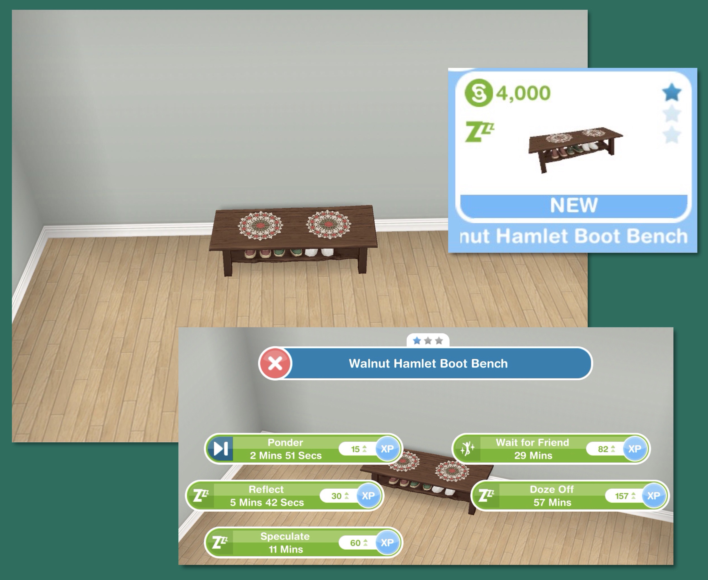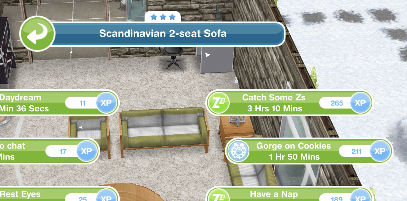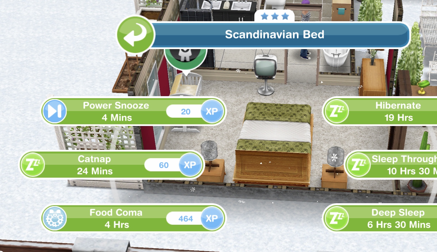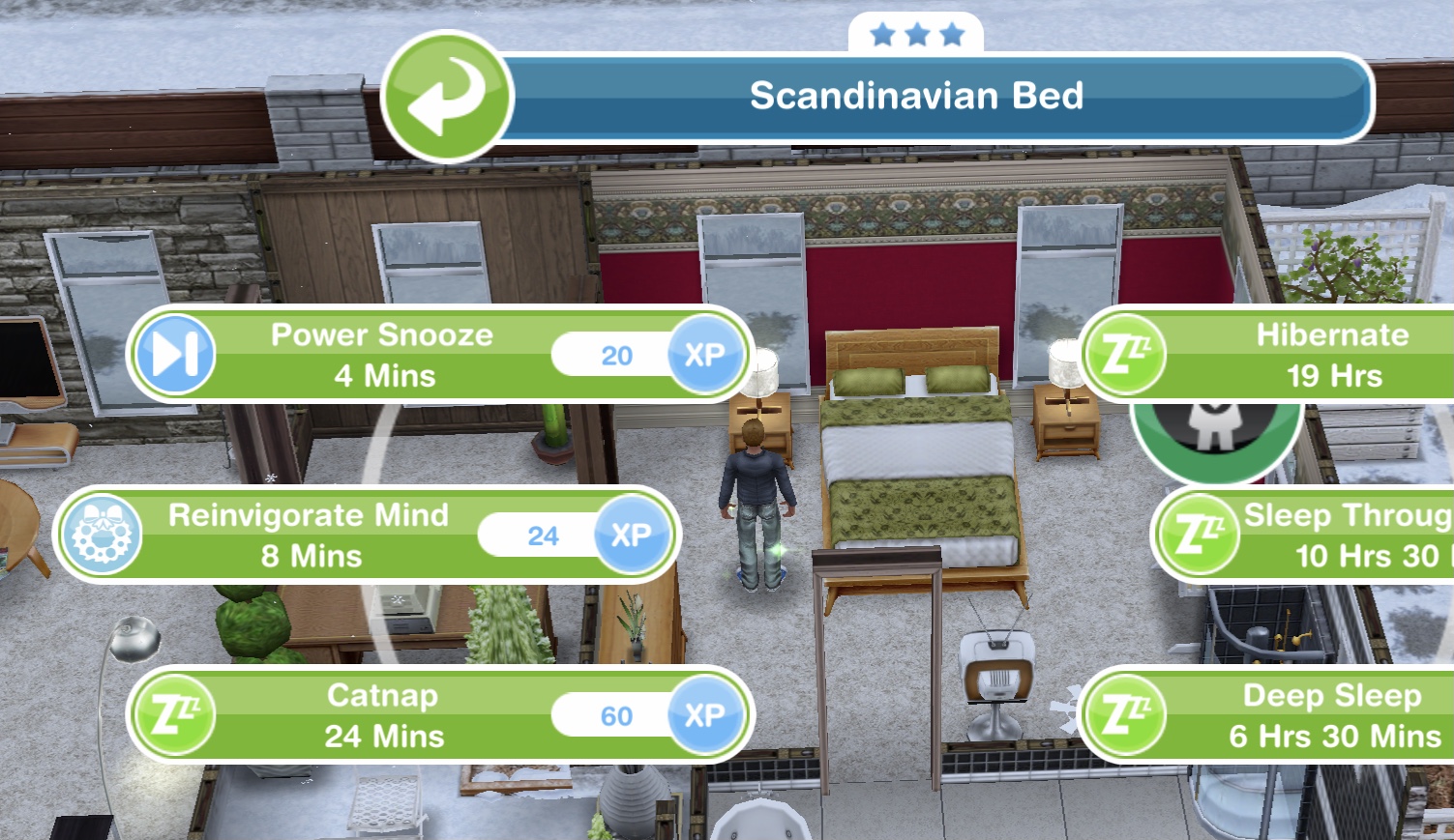 - Have a rest in bed- 3 hours [inspired: 2 hrs 51 mins] (using a 3 star bed at a sim’s house)