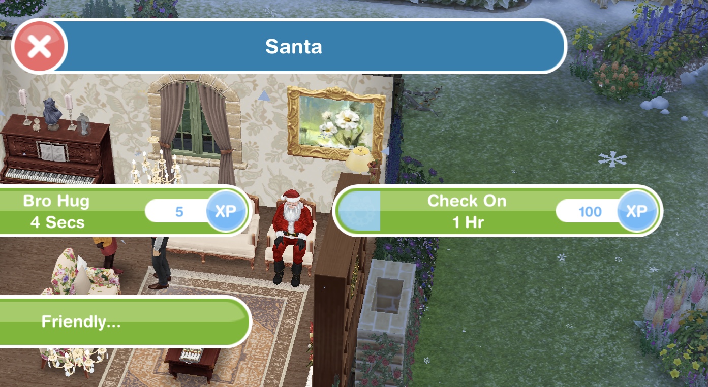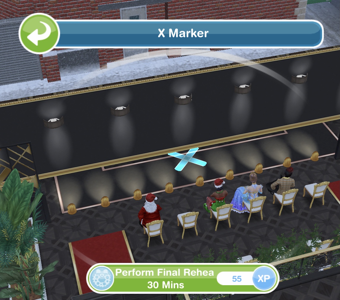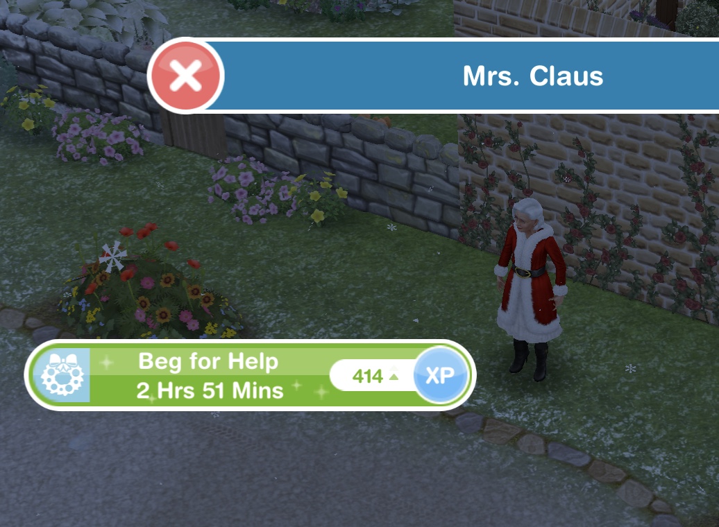 - Sing 25 Christmas carols- 1 hour 30 minutes [inspired: 1 hr 26 mins] (have 25 sims click on x at the front of their houses and at the x in Plümberg) (can skip all with 21 LP- need to earn LP quickly?)
