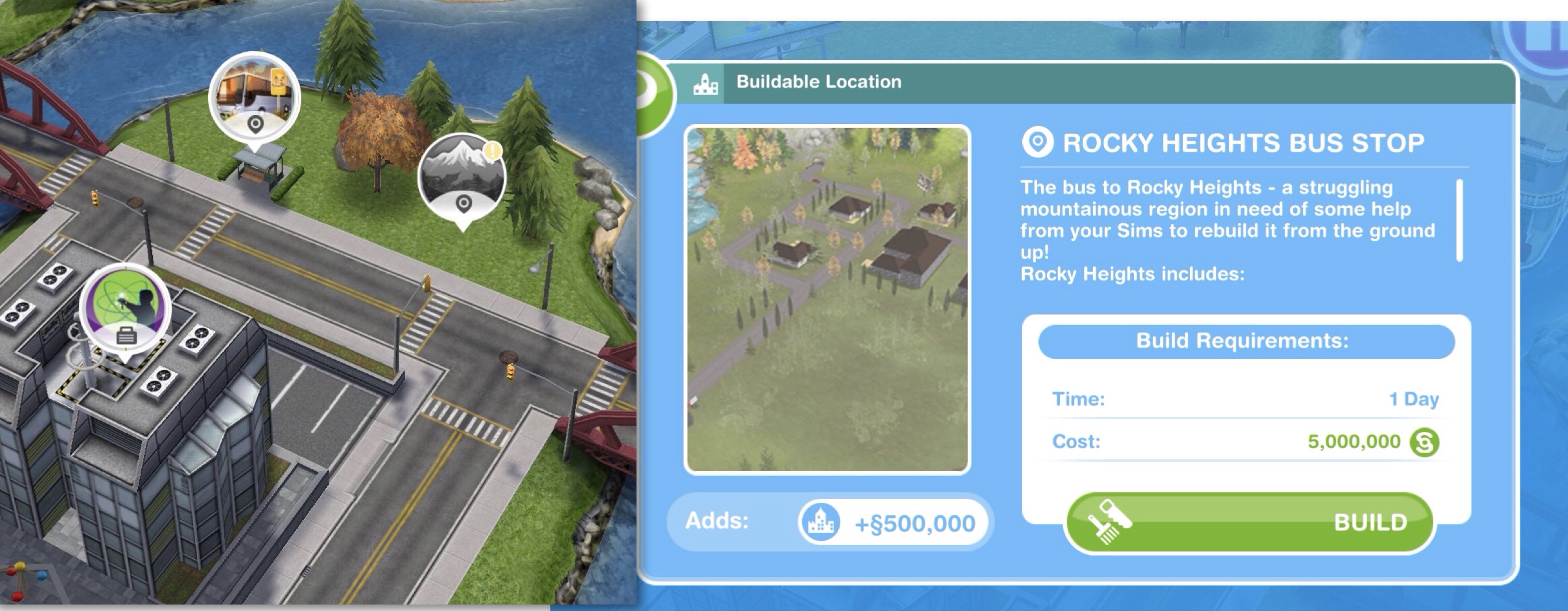 - Once you head to Rocky Heights, click to finish construction on the new road and then you can build the first house in Breezy Fields: