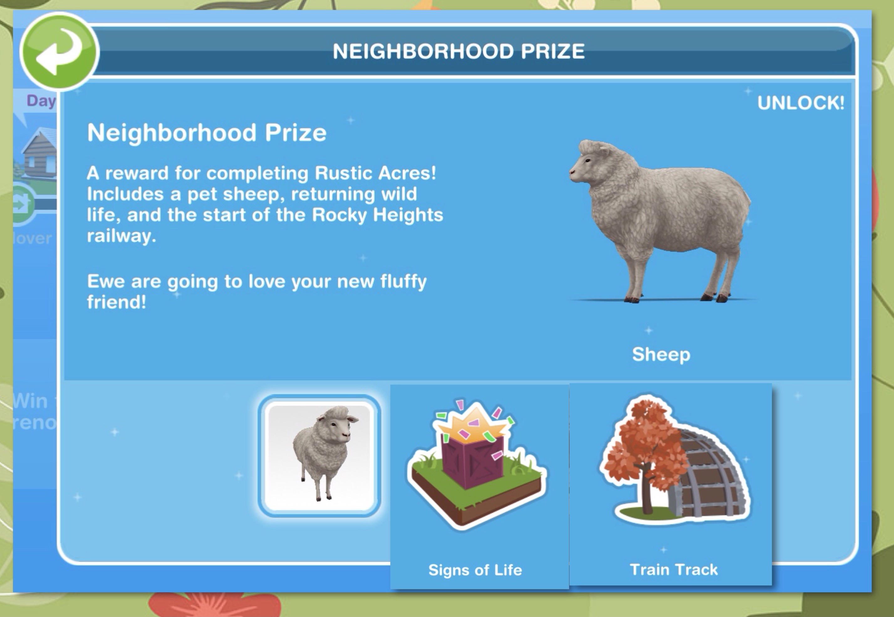You don’t have to complete this event in the time limit to unlock the grand prize (your sims can live at Rosebud Ranch and you also unlock visual upgrades to Breezy Fields) you will get them once the event is complete: