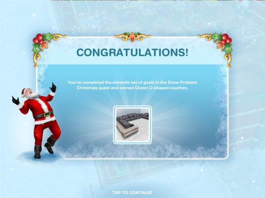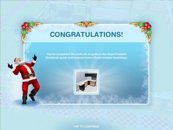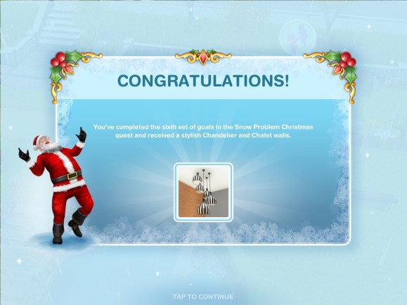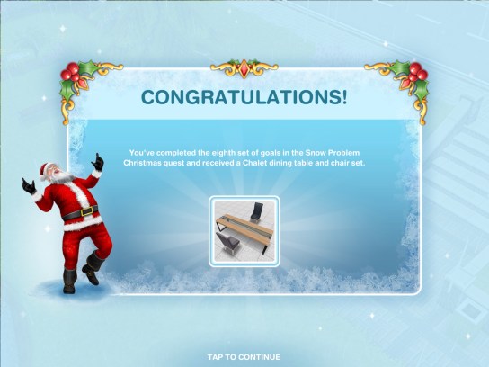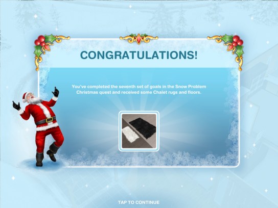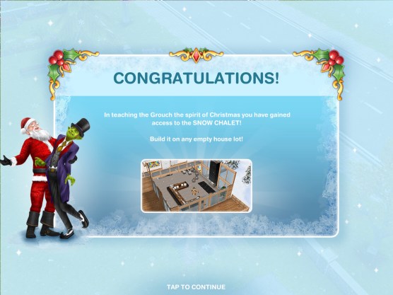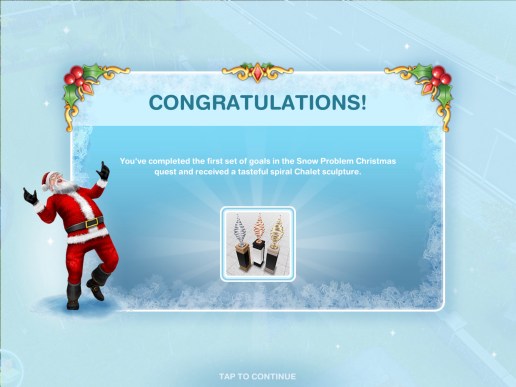 If you completed this quest in the time limit you will be able to build the Snow Chalet in your Simtown, keep reading for information and pictures of all the prizes you unlock in this quest