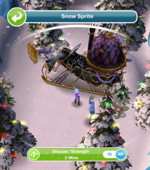 - Discuss stopping the frostblaster- 1 second (you need 4 sims at the Ice Palace to do this, they all need to click turn together on the frostblaster)