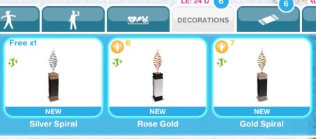 Can be found in the decorations section of the home store, first silver spiral is free then it costs 5LPs, rose gold costs 6LPs and gold costs 7LPs