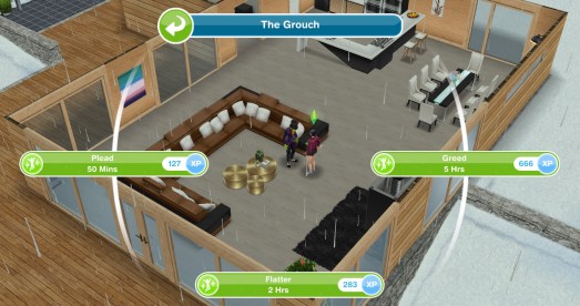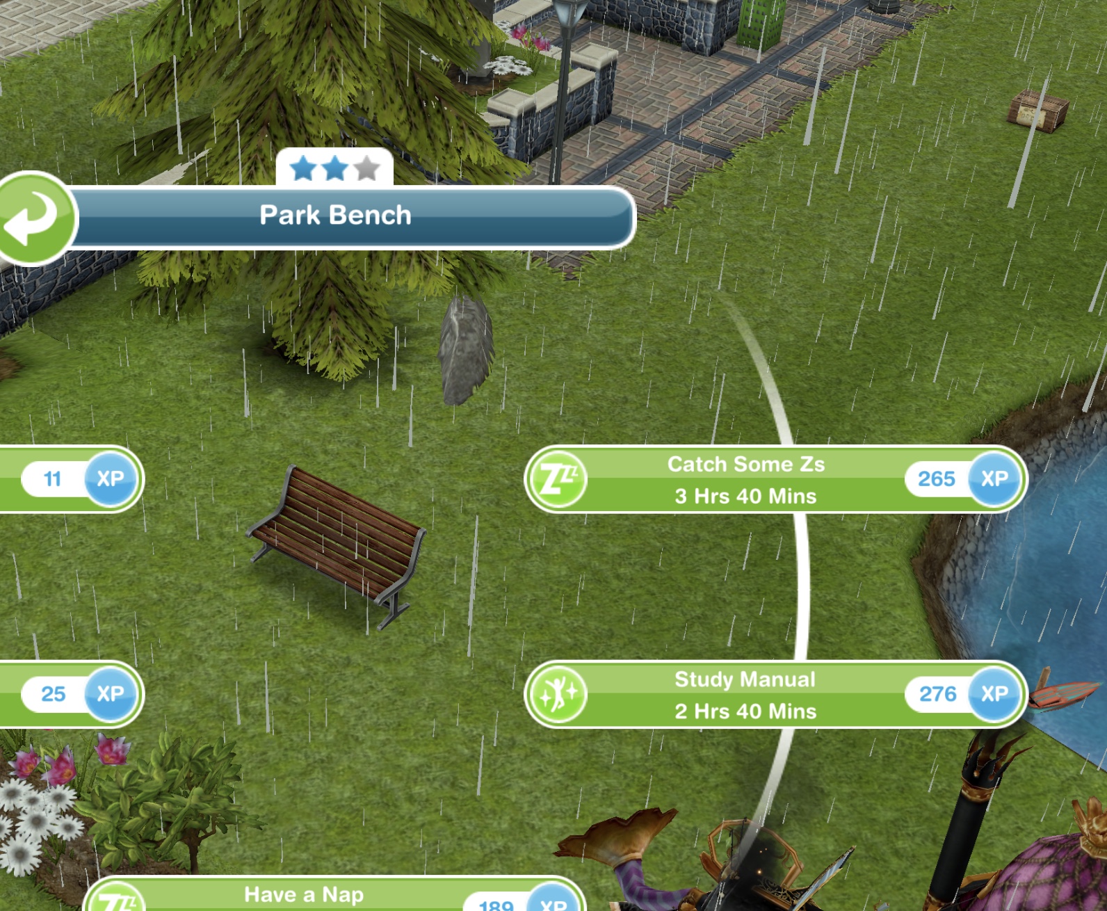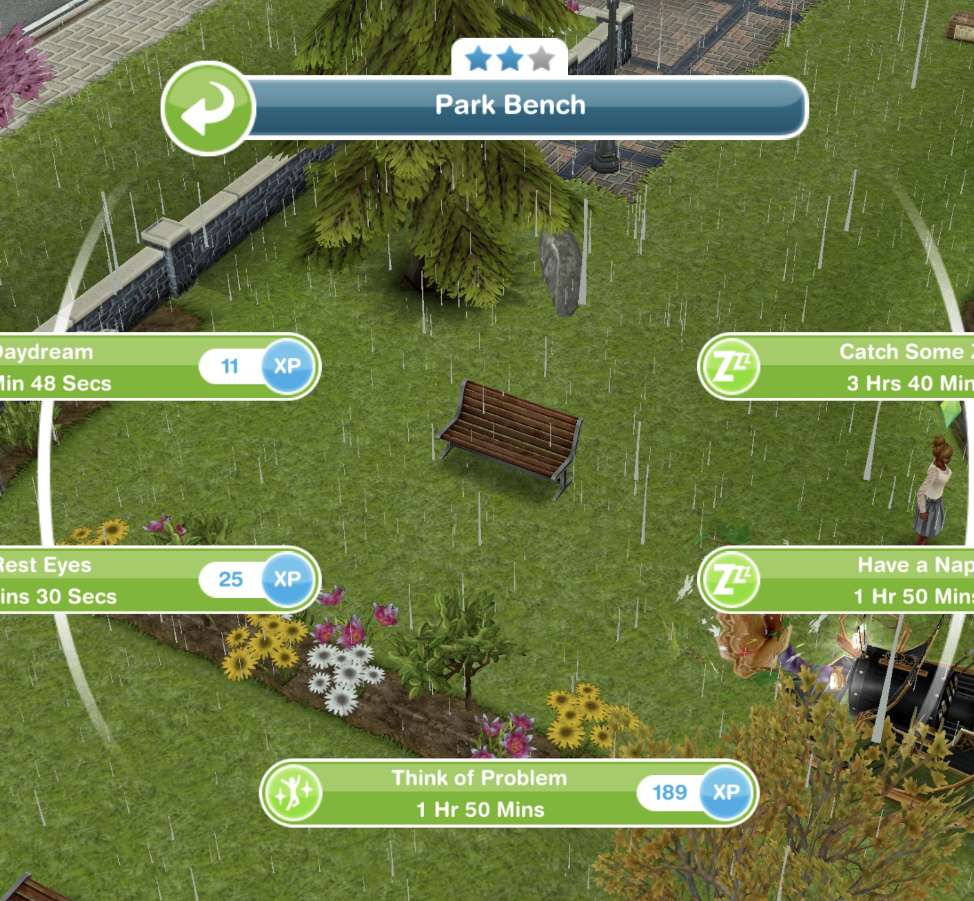 - Post cards- 4 hours (using the mailbox at the front of one of your sims houses, collect your daily reward first to get this option)