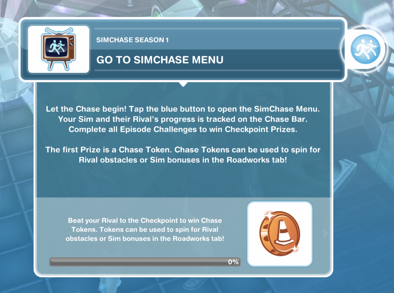 I’m not going to post about the challenges as they may be different for you and they will be different for each season but if you are stuck look for the SimChase symbol on objects around your sims house: