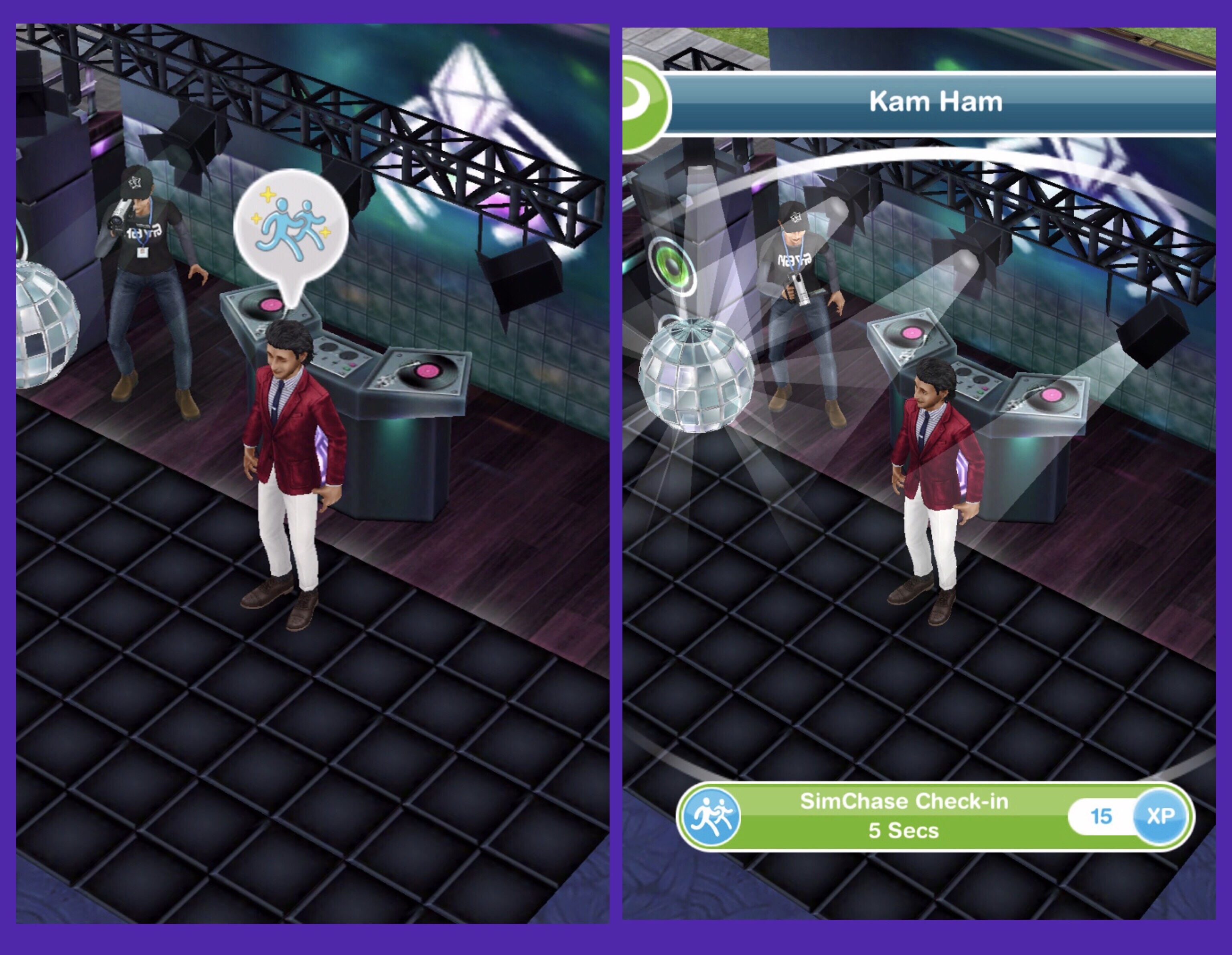 You will then need to check in at the nightclub with the SimChase host Kam Ham (click on the SimChase symbol that appears above his head):