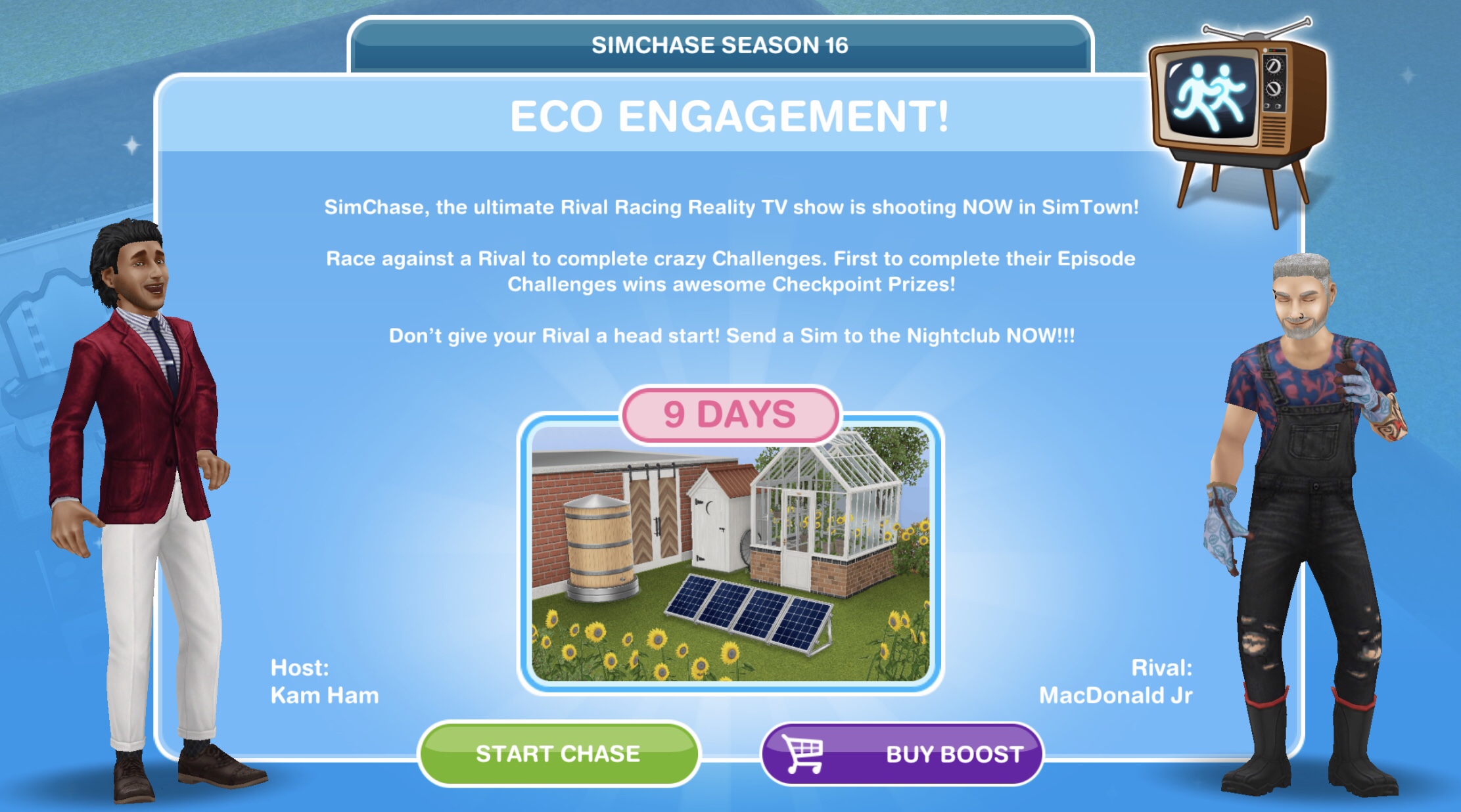 I was completing Season 16: Eco Engagement which is a 9 day SimChase