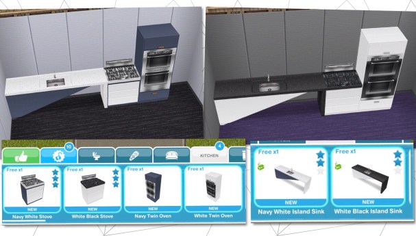 Unlocks the Stoves, Twin Ovens and Island Sinks in White Black and Navy White, the sinks can be found in the countertops section and the stoves and ovens can be found in the kitchen section