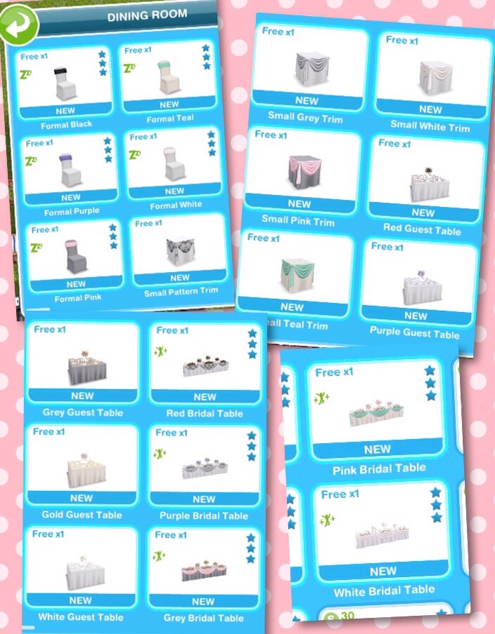 Bridesmaids and Groomsmen Collection 2- requires 7,000 pottery, 7,000 jewelry, 6,500 glassware and 90 constructor coins to buy