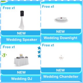 You also unlock the industrial grill, fridge (kitchen section) and countertops (countertops section) as well as the wedding instruments and two bars (decorations section)