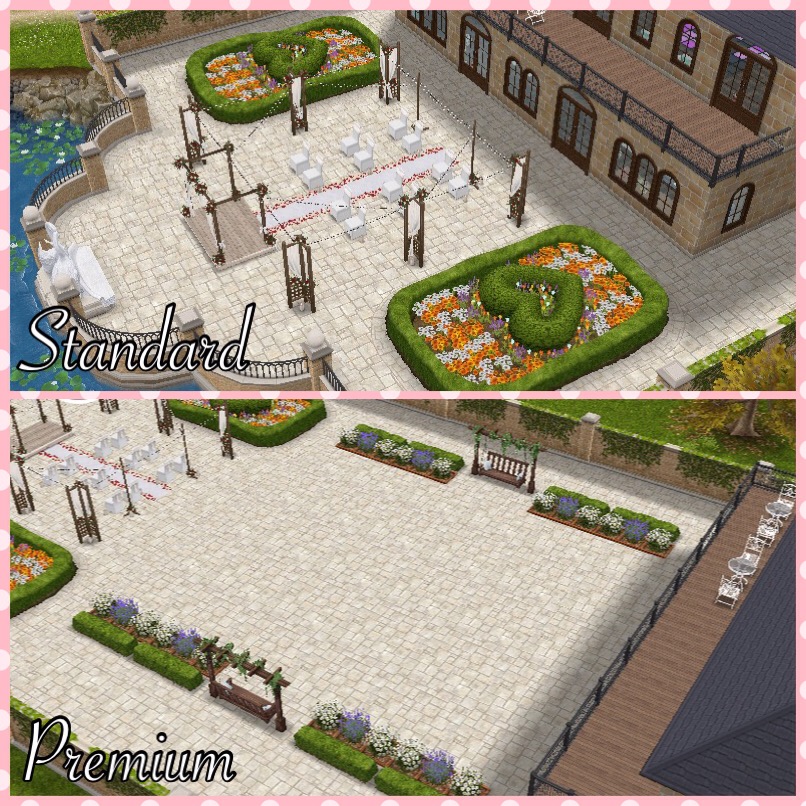 You can build it on a standard or premium house lot, the only difference is there is a larger gap between the seating for the ceremony and the house. It isn’t often I say this but I do actually prefer the standard one: