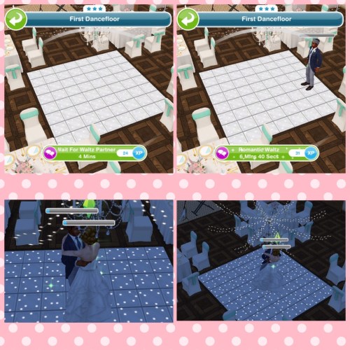 You will only unlock the wedding ceremony and reception if you manage to buy all the other personal progress prizes in the time limit, the first one built is free after that they will cost simoleons. I absolutely love this house, the ceremony space in the garden is elegant, the first dancefloor in the dining room looks beautiful at night and then your sims can party the night away on the second floor!