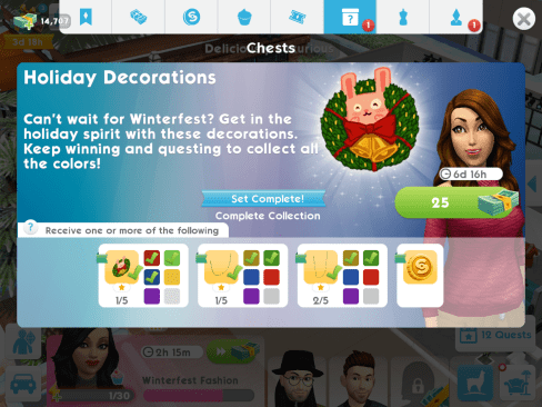 6.Complete the Winterfest Holiday Party event in Downtown (click on a sofa to begin) Reward: 50 Simcash