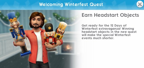 Winterfest has arrived on The Sims Mobile! There is loads going on in the 12 days of Winterfest (although oddly it is only available for 11 days!) There is a 6 part quest to complete each day as well as Winterfest events to earn candy canes which can be used to buy Winterfest items and decorations and the more candy canes you earn the more prizes you unlock with the grand prize being Father Winterfest’s outfit!