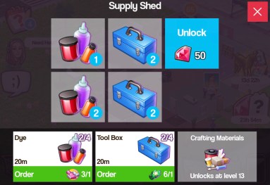 - Own a Supply Shed (buy one from the workstations tab in the shopping cart) Cost: 300 coins