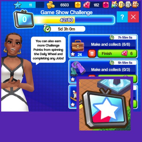 - Complete 10 Game Show Challenge Tasks (click on the TV symbol to view your Game Show Challenge Tasks, complete 10 of these tasks to complete this)