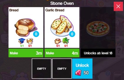 - Own a Stone Oven (buy one from the workstations tab in the shopping cart) Cost: 1,000 coins