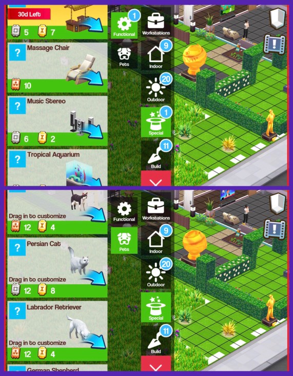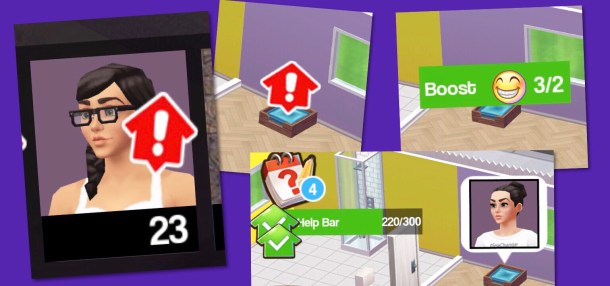 - Help 5 other players’ Functional Items (in the friends tab if a player has a functional item that needs boosting you will see the red house symbol, go to their house, click on the functional item and boost it)