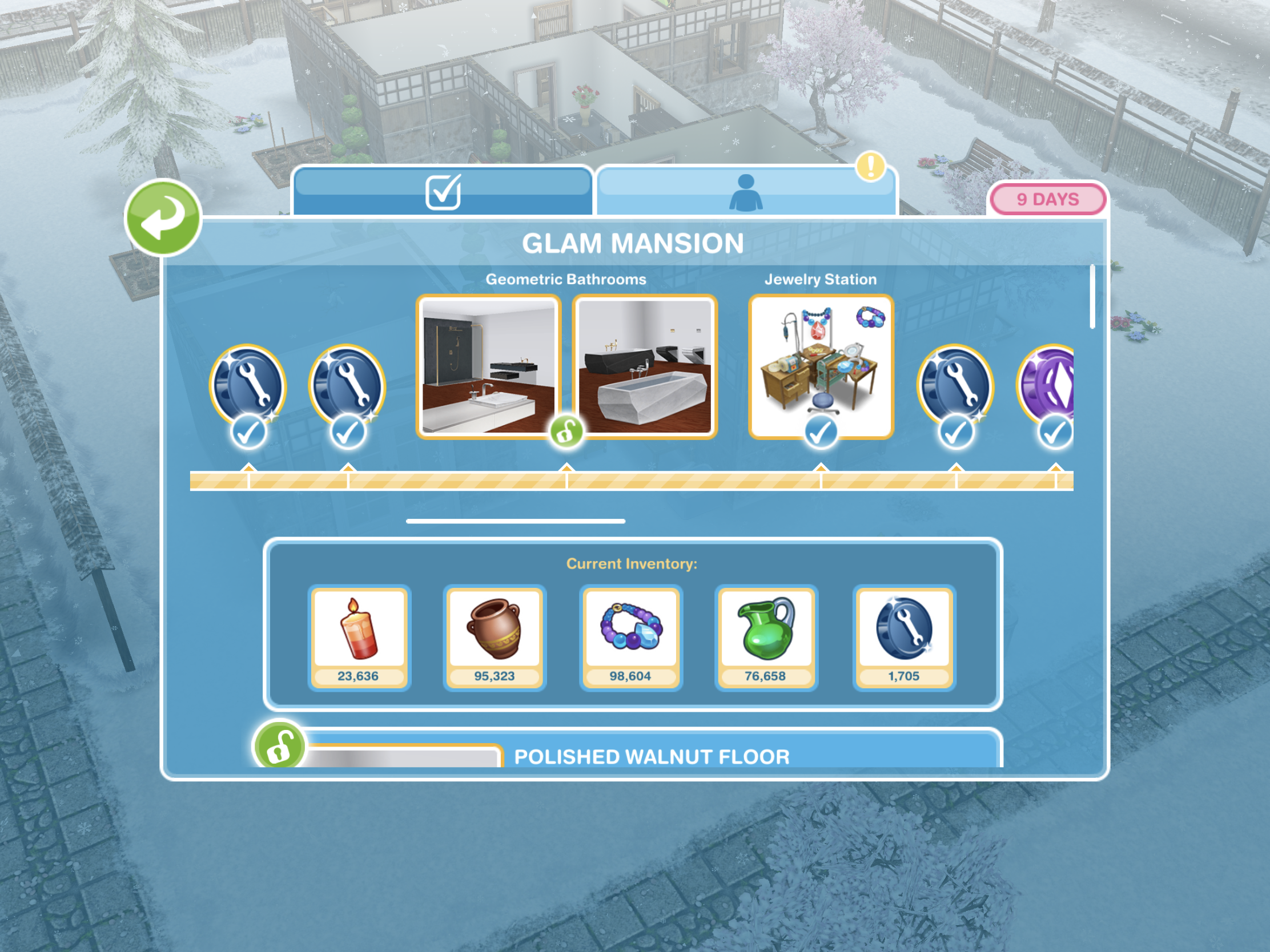 Here you will see you have collected enough items to unlock the Store Flooring pack! When you unlock each pack, before the items are available in your home store you need to purchase them with the arts and crafts items you make- this goal is coming up!