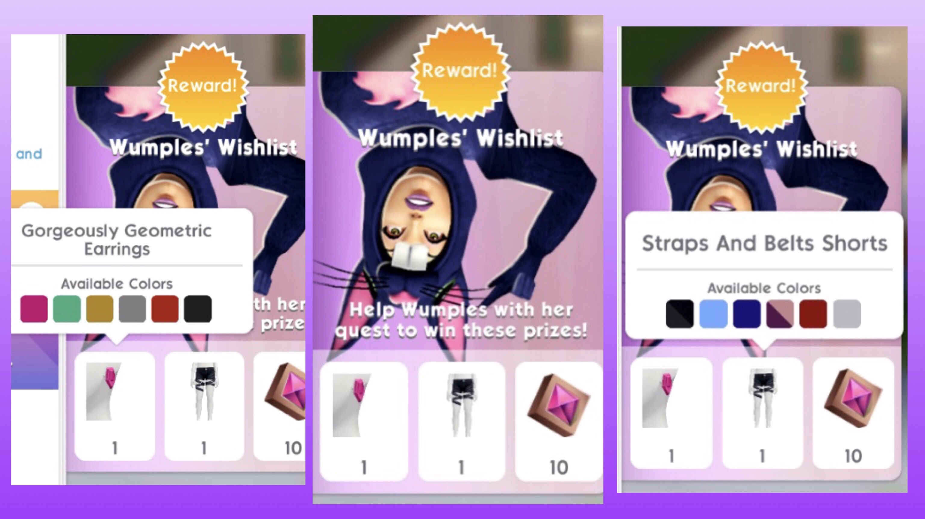 Wumples has come from The Sims Freeplay to see what is going on in The Sims Mobile and she has brought with her a new quest Wumples Wishlist! Completing this limited time quest in the 5 day time limit unlocks the Straps and Belts Shorts, Gorgeously Geometric Earrings and 10 Fashion Gems.