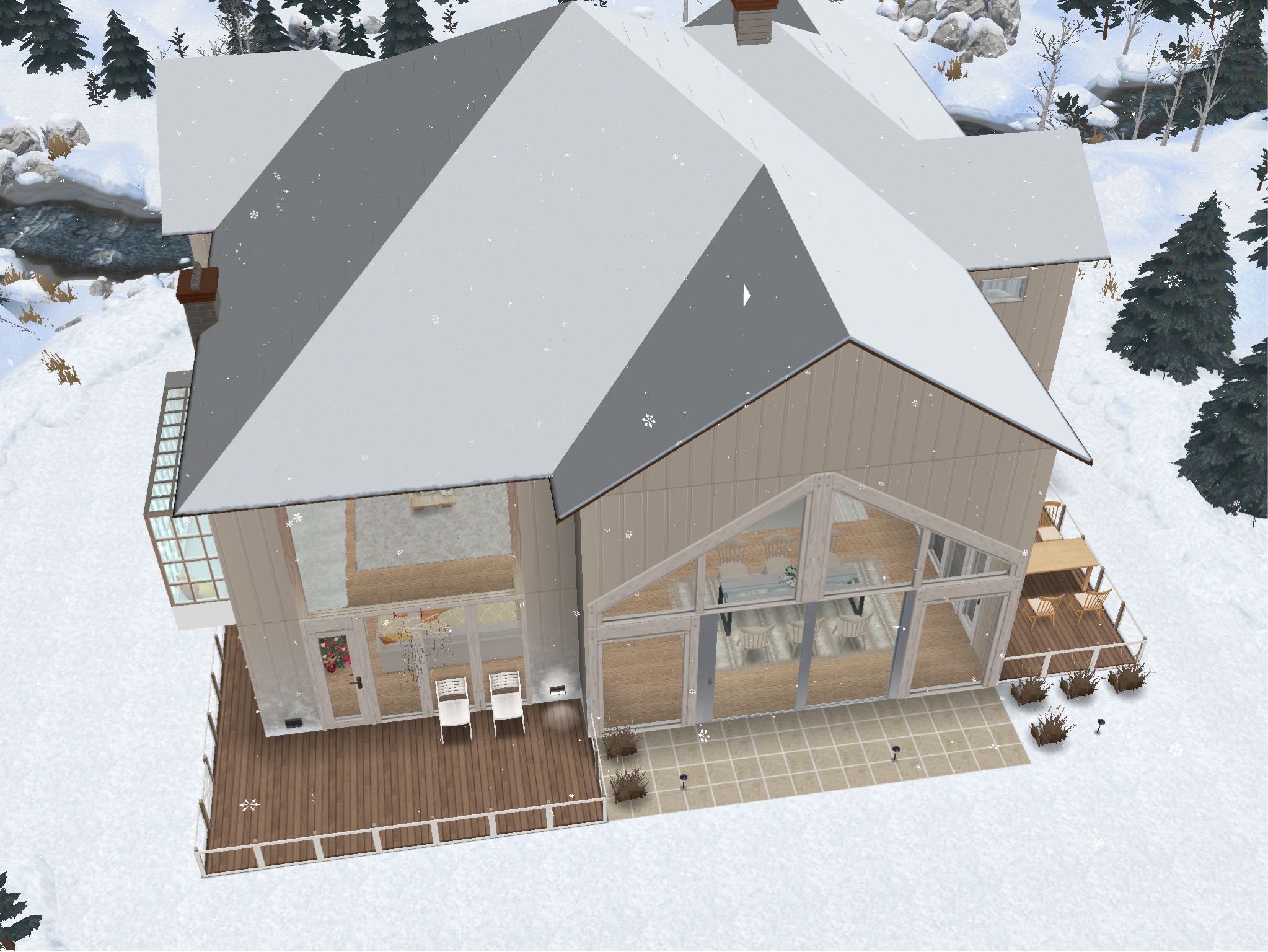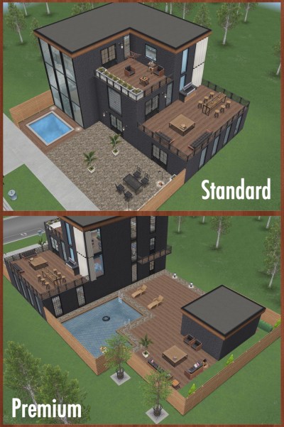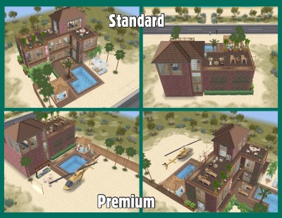 The premium house is the same you visit during the quest, it is 3 townhouses in one house and is located in a beautiful Scandinavian style town with wintry scenery. The main house is the same on the standard and premium residence, the premium has an extra 4 buildings behind the main house: