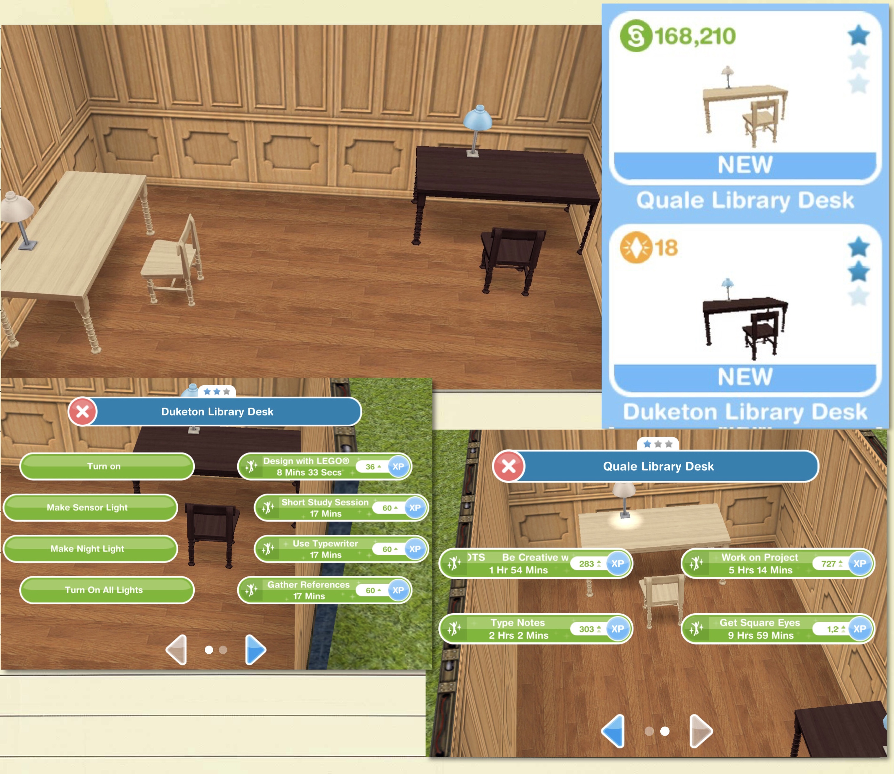 - Inspect workstations 10 times- 5 minutes [inspired: 4 mins 45 secs] (can skip all with 9 LP- need to earn LP quickly?) NOTE: there are only 6 workstations at the workshop but you can click on them with more than one sim at the same time